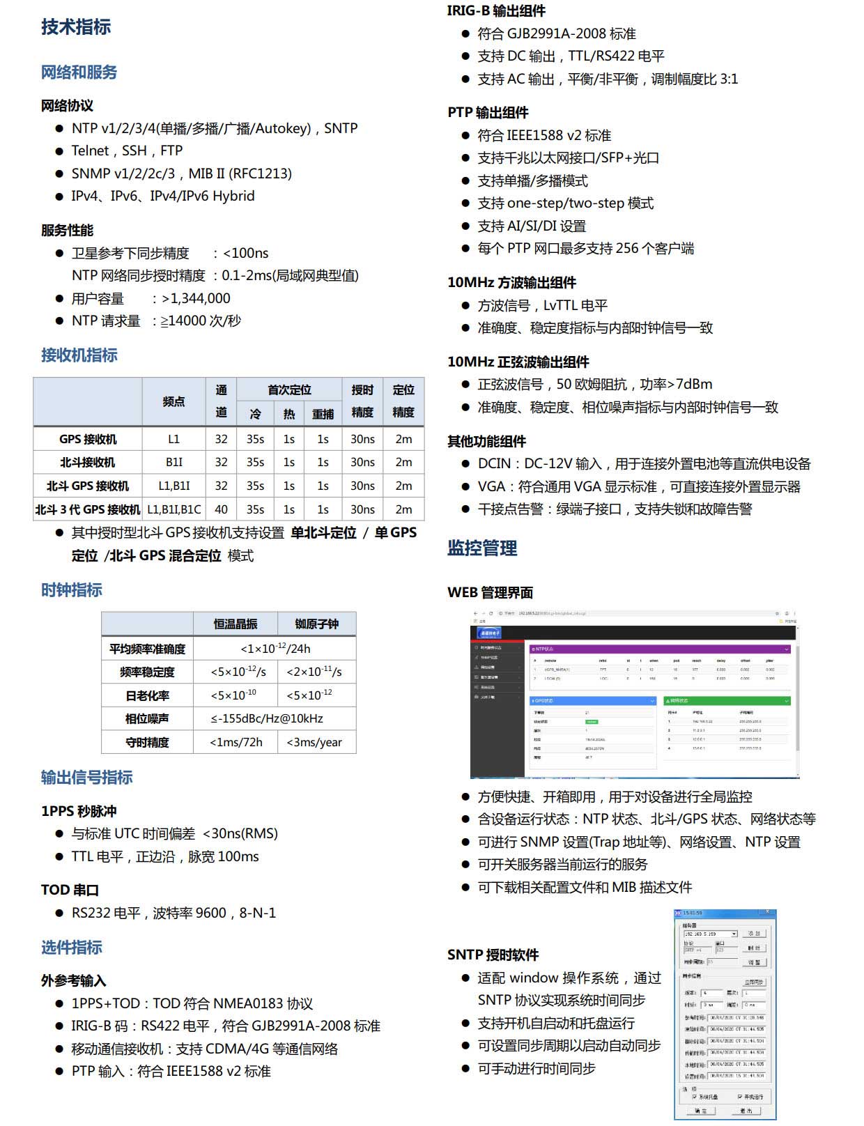 • HJ210系列NTP網絡時間服務器支持標準NTP(含v1/2/3/4)和SNTP網絡協議,可為計算機應用系統、流程控制管理系統、電子商務系統、網上B2B系統以及數據庫集群等系統需要提供精密網絡授時服務和時間戳服務,廣泛應用于企事業單位、金融、移動通信、公安、石油、電力、交通、工業以及特殊行業等各個領域...
