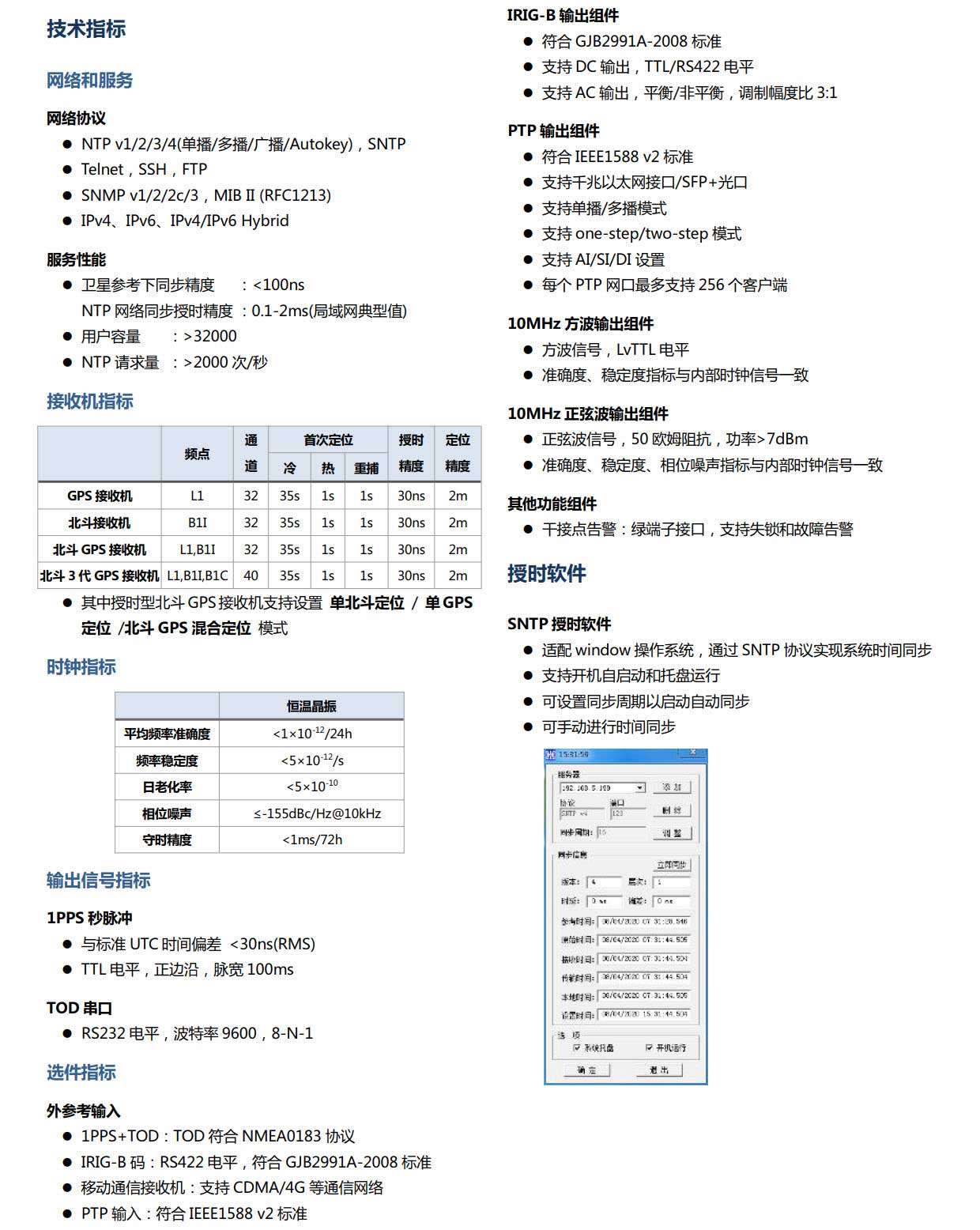 • HJ208系列NTP網(wǎng)絡(luò)時(shí)間服務(wù)器支持標(biāo)準(zhǔn)NTP(含v1/2/3/4)和SNTP網(wǎng)絡(luò)協(xié)議,可為計(jì)算機(jī)應(yīng)用系統(tǒng)、流程控制管理系統(tǒng)、電子商務(wù)系統(tǒng)、網(wǎng)上B2B系統(tǒng)以及數(shù)據(jù)庫集群等系統(tǒng)需要提供精密網(wǎng)絡(luò)授時(shí)服務(wù)和時(shí)間戳服務(wù),廣泛應(yīng)用于企事業(yè)單位、金融、移動(dòng)通信、公安、石油、電力、交通、工業(yè)以及特殊行業(yè)等各個(gè)領(lǐng)域。...